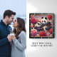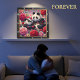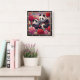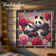 This heartwarming square wall clock features a beautiful digital illustration of a panda couple sharing a loving moment. The two pandas are nestled together, surrounded by a lush and vibrant garden of oversized red and pink roses. Small red hearts float gently around them, adding to the romantic atmosphere. The scene is rendered with soft textures and rich colors, creating a cozy and affectionate aesthetic. The artwork is set within a modern black wood-grain frame with bold white numeric markers for easy readability. This functional home accessory is an ideal decorative piece for bedrooms or as a thoughtful gift for anniversaries and Valentine Day. Its high-detail floral composition and sweet character design provide a stunning and romantic focal point for any interior wall.