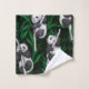 Hand- drawn pattern with giant panda cubs climbing branches and bamboo leaves.