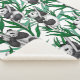 Hand- drawn pattern with giant panda cubs climbing branches and bamboo leaves.