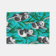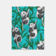 Hand- drawn pattern with giant panda cubs climbing branches and bamboo leaves.