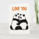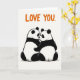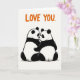 This sweet card shows two pandas hugging closely, sharing a tender, intimate moment. Their classic black and white colors stand out against a simple, bright off-white background. Their soft, round shapes and gentle poses express love and affection.