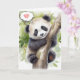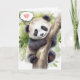 Watercolor artwork fo a cute panda bear in a bamboo tree with a thought bubble and pink heart for thinking of you.