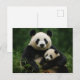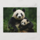 Bring calm, heartwarming wildlife energy to your space with this photorealistic panda postcard. Featuring a panda mother cuddling her cub amid fresh bamboo leaves and soft rainfall.