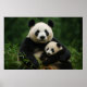 Panda Mother & Cub in Gentle Rain Poster