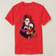 My 11 yo wore adult XL (5’7” 165#). The 8yo is small framed. She wore adult small and tied it in the back. Grandma wore adult large with long sleeve shirt underneath. Tall girl adult medium. Dark haired male adult large. Good quality dark Heather gray, Gildan brand shirt. -it was next up from basic choice and cost about $20 per shirt. Not too thick or thin. Washed and dried well, no major shrinkage. Not see-through. Can wear a bra under it fine. Screen print is just as shown and well done, front and back.