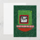 Funny panda over green and red collage elements, red and white stripes, with all sitting on a highly textured green background.