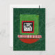 Funny panda over green and red collage elements, red and white stripes, with all sitting on a highly textured green background.