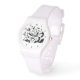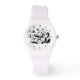 I only have one complaint. I ordered the watch with clear case and strap, and what was sent was white case and strap. I'm going to keep it because 1) it looks very nice in white, and 2) it would take too long to get a replacement made and sent in time for my occasion. Aside from the mix up with the color, the watch does look very good in white. The purple dial is actually sparkly which did not show in the online images. That was a nice surprise. If you like Swatch watches this is very similar to those. It's 33.6mm in diameter, 10.5mm thick, and 40.6mm lug to lug. Stainless steel case back says 3ATM/30m WR, so no swimming or showering or submerging this one. If you like Woodstock, this is a great choice.