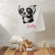 The Panda with a Pink Bow Baby Blanket features a cute, shy panda wearing a pink bow over one ear. The customize the text as desired. Makes a great gift!