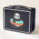 This is a standard metal lunchbox that appears to work just fine. We designed this box ourselves with an uploaded photo and custom text on the front and back. It looks absolutely beautiful except the front of the lunchbox is not centered like it shows in the photo. The print borders don't align with the inset flat part of the box where the preview photo online showed it perfectly centered in there. The back looks nice and centered though.