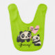 A cute bib features a spring green background with two panda bears, a pink heart, and text that reads I Love Granny