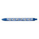 Very nice blue, or black ink pen. I will be buying more. The print was fine. I can easily see the print. The flowers look great.