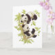 These cute little pandas are playing in a bamboo tree. These delightful youngsters are sweet as can be and will enchant you with their whimsy.