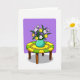 This design shows a stylized bouquet with thick black outlines, arranged like a sweet offering between close friends ❤️. White, sunny yellow, and soft orange flowers mix with tiny purple blooms, leaning toward one another as if sharing a quiet moment. They sit in a teal pitcher-shaped vase, surrounded by lush green leaves that curl gently outward. Behind the arrangement, a rectangular lavender panel fills the background and makes the colors stand out without feeling busy. The vase rests on a round table whose top is divided into alternating bright yellow and lime green sections, edged by a warm golden-brown ring. Near the top area of the card, simple lettering appears in a dark tone against the white space, with a smaller line of text placed beneath it in a softer purple 🌼. Four dark brown legs hold up the table, and a flat gray shadow sits just under them on the white ground.