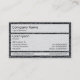 A business card template with a three panelled design on the front, with a header, body and footer layout for all the main details. On the reverse of the card there is a single main panel which can be used to add additional details and or images or left blank providing a useful note panel. This version has an image texture in the background with semi transparent white panels allowing the texture to show through without detracting from the clarity of the text. This template can also be further customized, e.g. a logo could be added to the left in the header panel, the fonts and background color can also be changed. Suitable for many types of business. A growing range of other variations of this template are also available.