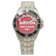 Has heft and feel of expensive stainless steel quartz watches. Good band with safety catch. I removed links, which is easy because engraved arrows show direction to push the linking pins. As always by this seller, the image (a railroad logo) is a perfect reproduction of my emailed image, and is precisely spaced and aligned.