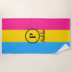 You can add your own monogram initial and name to this beautiful Pansexual Pride flag design specifically made for a beach towel.