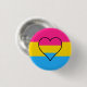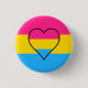 Classic Round Button with pansexuality pride flag with pink, yellow and blue stripes, striped pattern with heart design