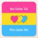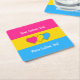 Paper square coaster with the pansexuality pride flag with little hearts in the center of the design. Pink, yellow, and blue flag of the pan pride movement; with an editable text field for your name or message
