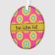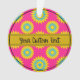 Christmas ornament with a seamless modern geometric flower pattern in the colors of the pansexuality pride flag - a pink, yellow and blue pan pride design on a pink background; with an editable text field for your name or message; a great way to decorate your Christmas tree :D