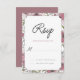 This watercolor, floral, reply card has a white center and is framed with plum-colored and dusty-rose-colored pansies. (<a href='http://www.freepik.com/free-vector/wedding-invitation-with-botanical-style_1062569.htm'>Designed by Freepik</a>). <br/><br/>The card is easy to customize with your wording, font, font color and choice of six paper types.<br/><br/>Not exactly what you're looking for? All our products can be custom designed to meet your needs at no extra charge.<br/><br/>Simply contact us at askcottonlamb@gmail.com<br/><br/>Coordinating products available: Pansy Blossoms Invitation<br/>Pansy Blossoms Postage Stamp<br/>Pansy Blossoms Thank You Photo Card