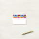 This Post-It notepad has a Spring design of purple, blue, orange, and red with yellow pansies layered on each other on a field of yellow.
