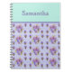 Pansy Flower Aqua Stripe art floral Girls Name Notebook