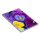 Pansy flowers floating in bird bath with dew notebook