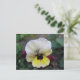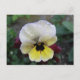 This pretty floral postcard features a detailed photograph of a white and yellow pansy flower with a black centre.