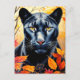 This feline acrylic artwork features a fierce black big cat against an autumn forest background, celebrating the fall season and wild cat felines simultaneously. The painting captures nature’s beauty and power with a warm color scheme of red, orange, and yellow. Perfect for big cat lovers and autumn enthusiasts!