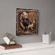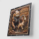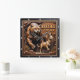 This dramatic square wall clock features a highly dimensional, close-up illustration of a brown panther (or leopard) and a white, happy goat standing side-by-side. The entire design is rendered in muted brown, tan, and dark leather-like tones, strongly suggesting a deep sculpted relief or Sculpted Leather Look. The panther has textured spots and is positioned on the left, while the goat is on the right, smiling with large horns. The background features detailed brown mountains and stylized trees carved behind the animals. The entire foreground is textured, resembling carved rocks and foliage. The large, three-dimensional embossed text "BESTIES FOR LIFE" is carved across the top center in a bold, golden serif font. The clock face features a simple clock face border with large, white, numbered tick marks (1 to 12) integrated into the outer frame. The artwork is surrounded by a thick, dark brown decorative border that resembles a black wood frame.