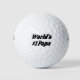 Golf balls with World's #1 papa in 3D black text.
