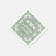 Papel picado love birds spring sage green wedding fiesta paper napkin featuring two love birds and a love heart with the word love as well as flowers, leaves and small dots. Colors: sage green and white