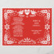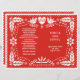 Papel Picado lovebirds red wedding fiesta folded program displaying two white lovebirds and a love heart with the word love and flowers, leaves and small dots on red. This Mexican folk art style floral wedding template design is fully customizable. Use only this type of paper as it folds well.