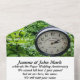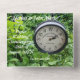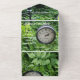 paper 1st wedding anniversary invitation with motto, "The best is yet to come", background with big clock and green leaves, suggest time pass but leave bride and groom young