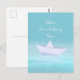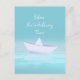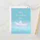 Paper boat on blue ocean postcard