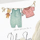 A great value PAPER (not card) alternative WITHOUT ENVELOPES at SMALLER size 4.5” x 5.6” and at a budget price. (Standard A6 envelopes are the nearest size to fit) Paper Boho Chic Clothes on Washing Line Baby Shower for a gender neutral shower with a set informal script for Baby Shower and the rest of the text you can easily personalise.