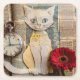 Playful and unique paper cat with pocket watch coaster, fun conversation piece for soda party or friendly gathering.