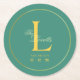 Add a personalized touch to your Save the Date invitations with these durable, 50 pt. pulp board paper coasters. Featuring a simple monogram letter, custom name, and date, these 4" x 4" coasters are ideal for memorable weddings invitations and keepsakes. They are absorbent, available in multiple shapes, and offer vibrant full-color printing for a stylish look.
