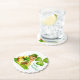 This paper coaster is shown with scalloped edges and a festive St. Patrick's Leprechaun clover print.