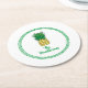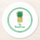 Paper coasters set shown in colors of Green and White with a pineapple art print with a custom name sample print.