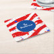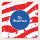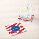 Paper coasters set shown in a patriotic stars print with a custom name sample print.