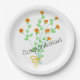 Modern, stylish and fun flowered paper plate. The congratulations text can be personalized to any special message for birthday, or special celebration. Text is also removable. The white background can be changed to your own personal color choice.