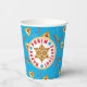 Happy Purim! colorful pattern (in English/Hebrew). Translation from Hebrew: Happy Purim! Purim Jewish Holiday poster with stars of David, traditional Hamantaschen cookies, gragger toy noisemaker, masks, gifts, colorful balloons on festive confetti background. Wish a great Purim celebration. Carnival, Masquerade, Festival, Kids Party, Israel. Crafts & Party Supplies > Party Supplies > Tableware > Paper Cups. For Her, For Kids, Birthday, Fashion. Design with text template. Personalize them by adding name or wishes English or HEBREW text.