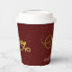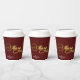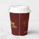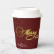 Greet your guests, friends and family with this stylish and modern Holiday Season Christmas paper cups, with a pretty faux gold handwritten script quote "Merry", on an elegant burgundy background, with faux gold glitter. Easily add your event or any other text to customize the template.