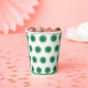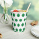 Green dots are tiled around the cup. Each dot has diffused edges with a dark center.