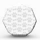 A pattern made of dog paws and bones cut out of paper. Custom acrylic awards.