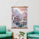 A lovely faux paper cutout landscape wall tapestry with mountains, pavilion, and trees.