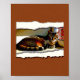 Museum-quality art print. Paper cutout collage style with bold organic shapes and flat color areas depicting resting house cat in a sunny window, created with rich earth tones and hand-drawn texture. Frame not included.