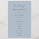 Budget Elegant Text Dusty Blue Wedding Program. A great value PAPER (not card) alternative WITHOUT ENVELOPES and at a budget price. Simple typographical design for your wedding programs. The main header is in a stylish set script and the rest of the text you can easily personalise. You can change the text and background colors if you wish to match your wedding color theme via the Customize Further option as well as other editing you may require. If you need any assistance with your editing of this design, please message me.